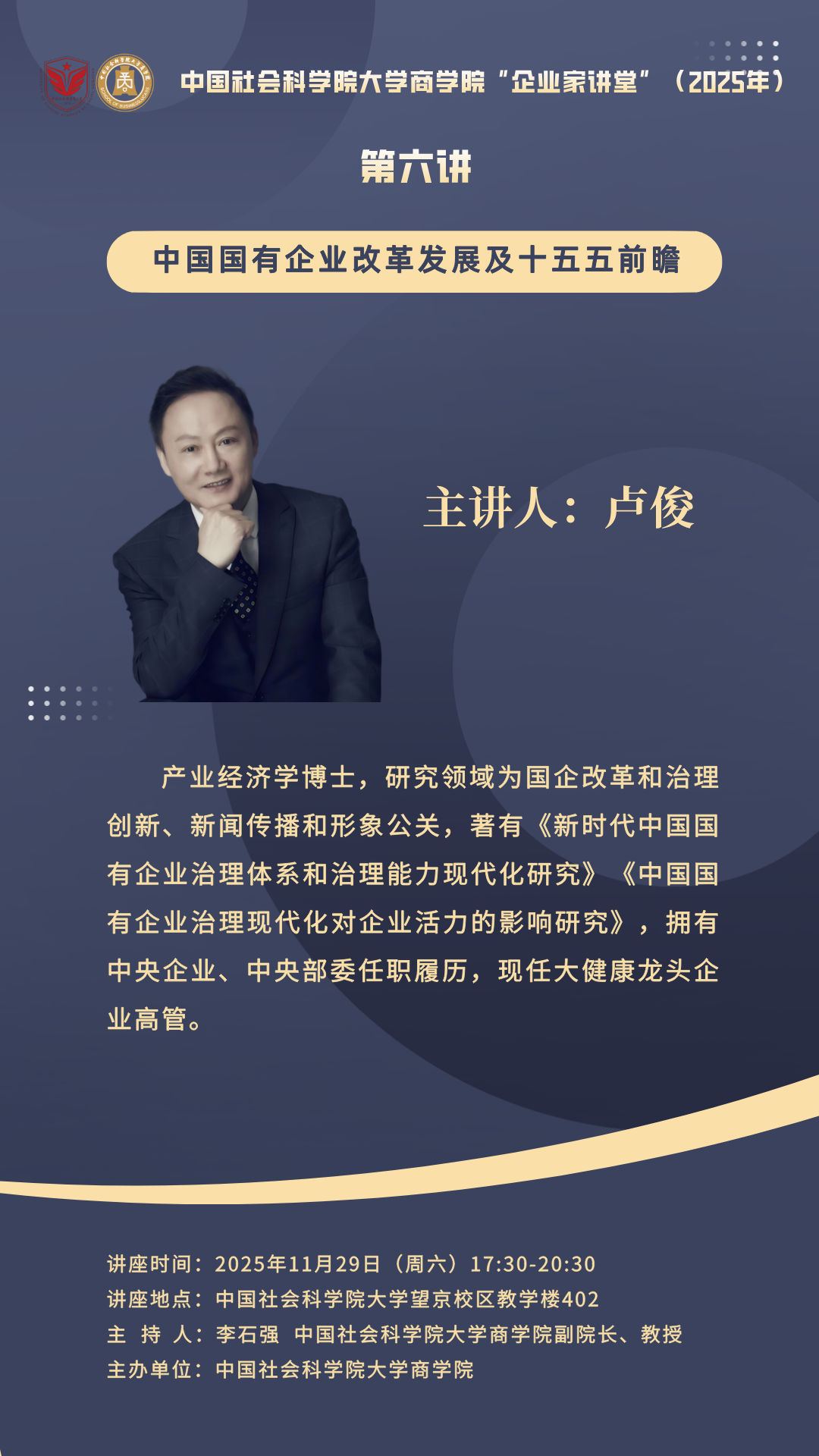 讲座预告 | 商学院“企业家讲堂”第六讲:中国国有企业改革发展及十五五前瞻